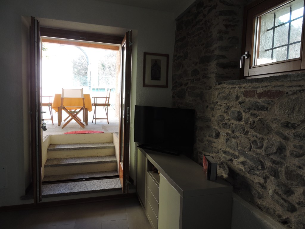 The living room and the view on the patio